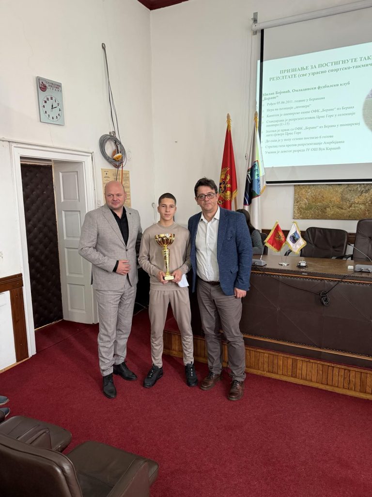 Juče je u prostorijama Opštine Berane upriličena svečanost na kojoj su uručena priznanja najuspješnijim sportistima, sportskom kolektivu i sportskim radnicima Berana za 2025. godinu.