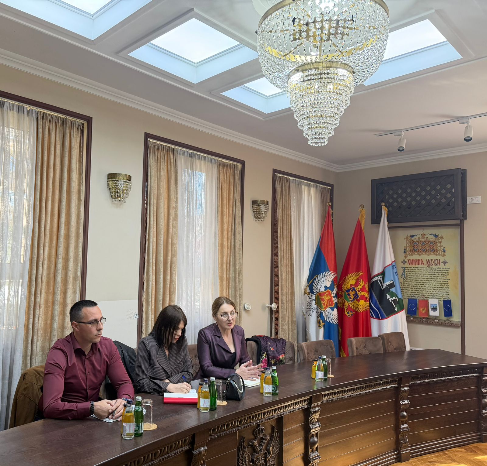 Потпредсједник Општине Беране Божо Премовић одржао је састанак са начелницом Одјељења за борбу против трговине људима мр Соњом Перишић Биговић и Бојаном Јушковићем из Министарства унутрашњих послова, представницом Министарства социјалног старања, бриге о породици и демографије Јеленом Раичевић, начелником Одјељења безбједности Беране Жељком Бабовићем и директором Центра за социјални рад Петром Пајковићем, о могућностима унапређења сарадње у борби против трговине људима.
