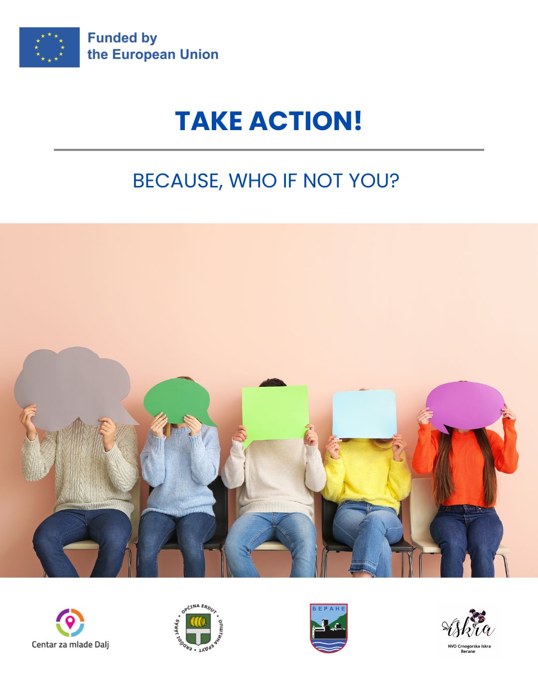 Са поносом обавјештавамо да Општина Беране, заједно са осталим партнерима, од 1. јануара 2026. године започиње спровођење међународног пројекта „Take action! Because, who if not you?“ у оквиру програма CERV (2021–2027).