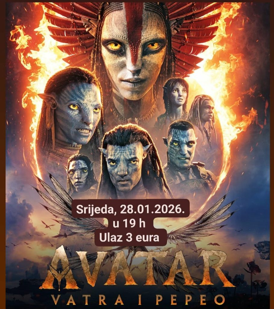 Трећи наставак култне франшизе, „Аватар: Ватра и пепео“ биће приказан у биоскопу Центра за културу у сриједу, 28. јануара 2026. године у 19 часова.