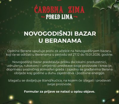 Opština Berane upućuje poziv za učešće na Novogodišnjem bazaru,…
